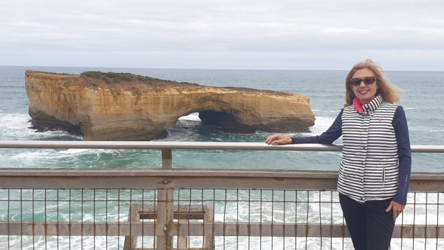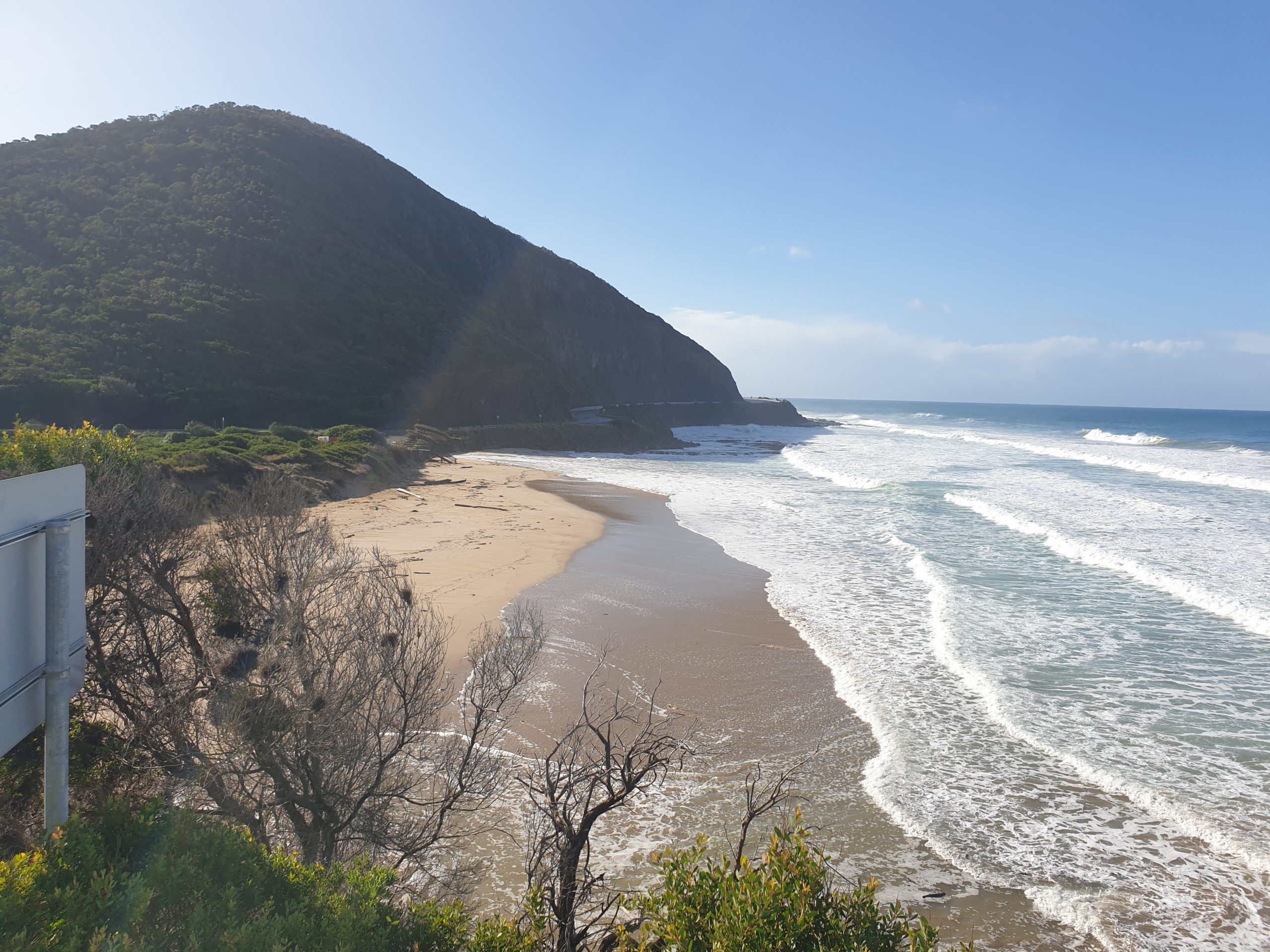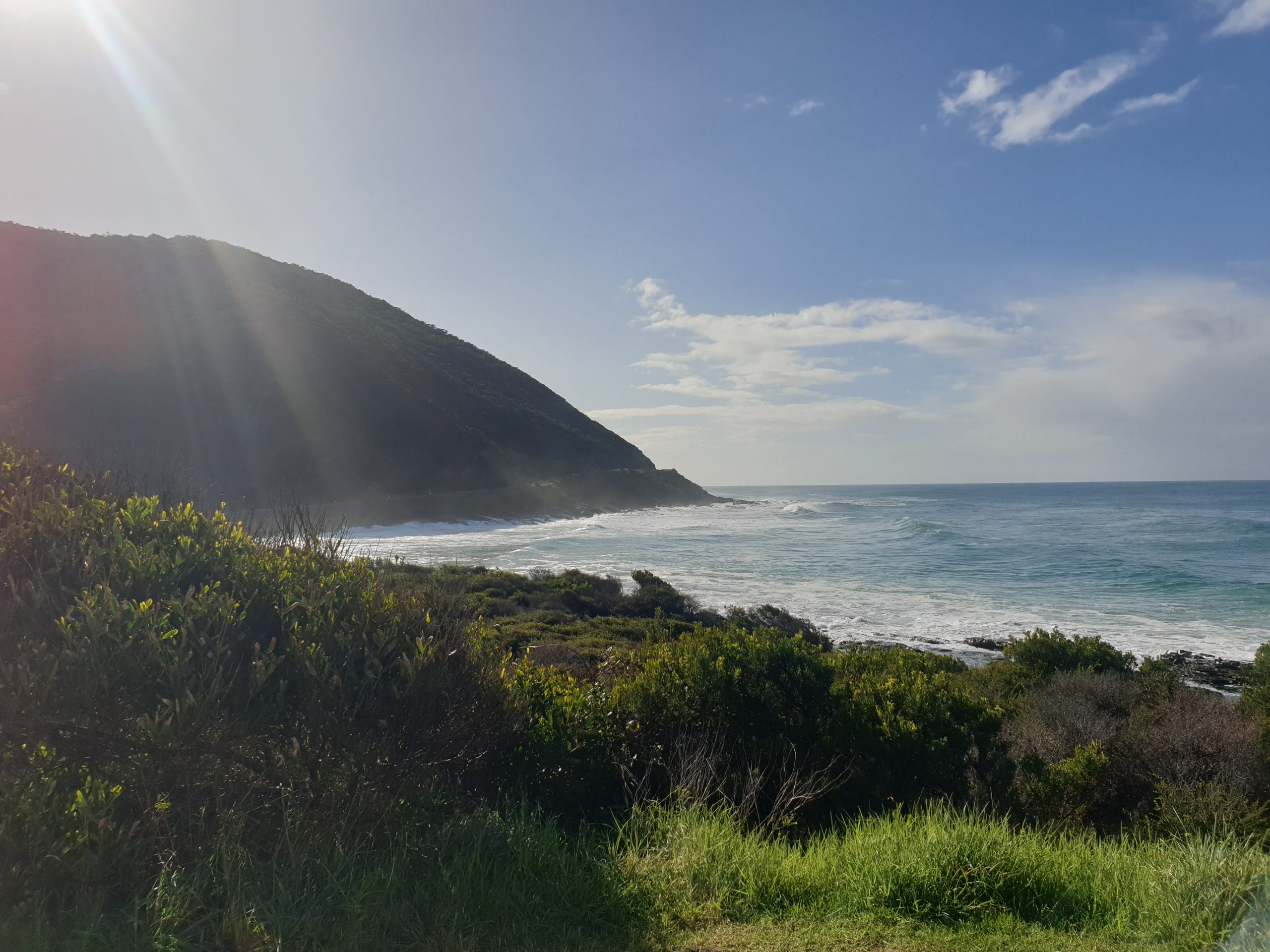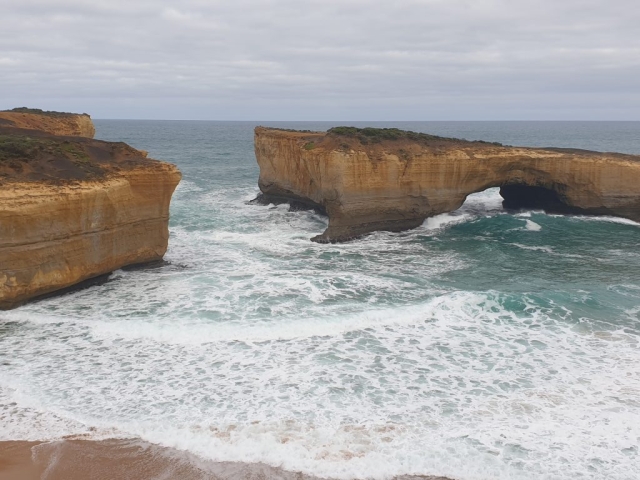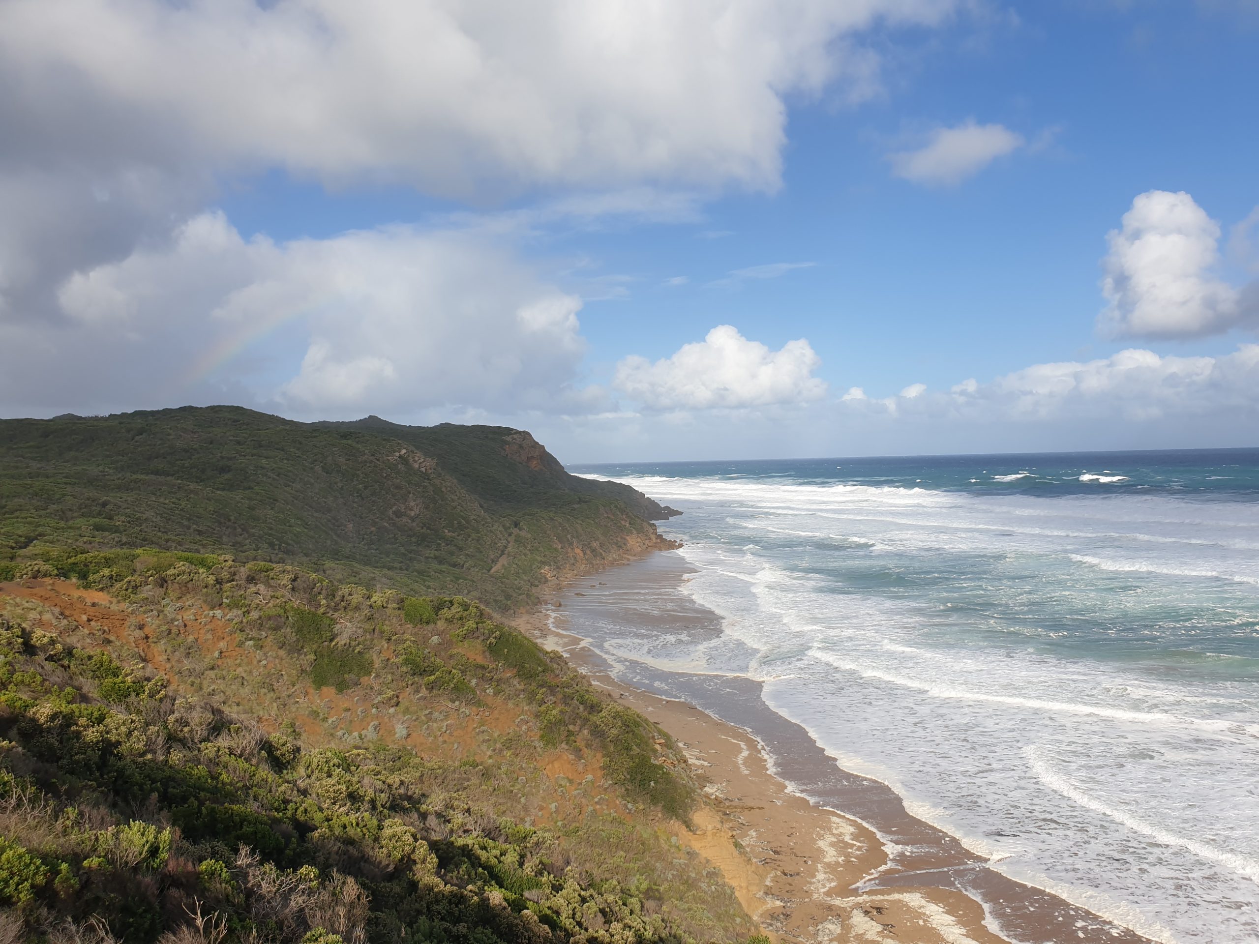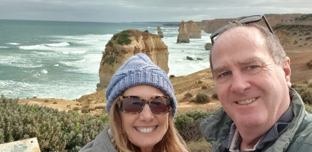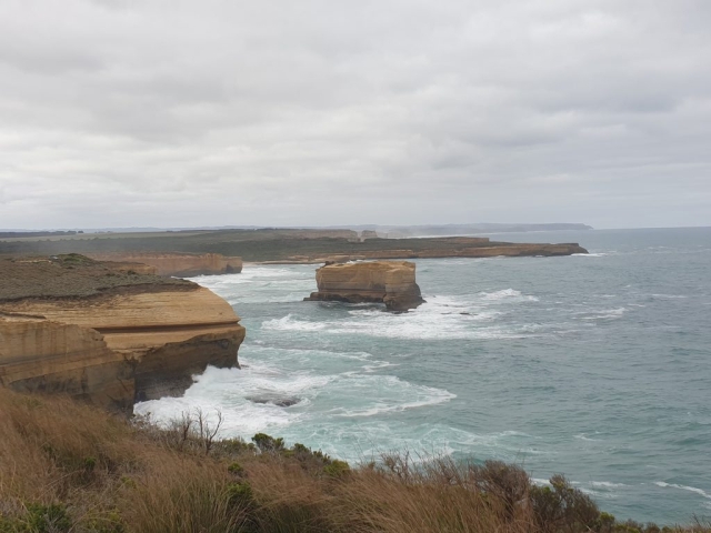 We re-joined the Ocean Road and stopped for a cup of tea and coffee overlooking the River Wye.. magnificent views of the roaring surf and spray, some waves resembling seahorses with long manes. We continued on to Apollo Bay.. a very picturesque town with shops on the right-hand side and a beautiful park on the left next to the golf course.