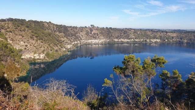 Today we stopped for breakfast at the Blue lake in Mount Gambia. Breathtakingly beautiful views even though it was a bit hazy. Very hard to photograph nature in all her glory. We’re standing at the bottom of edge of the crater, where once the volcano erupted. You can see the most incredible turquoise green water kissing the edges and beautiful reflection. The bright blue sky has lovely whisky, horsetail clouds and for a change the sun is shining. We took a short stroll around the lake on the path, capturing the beauty in all directions. It is surrounded by mountains.