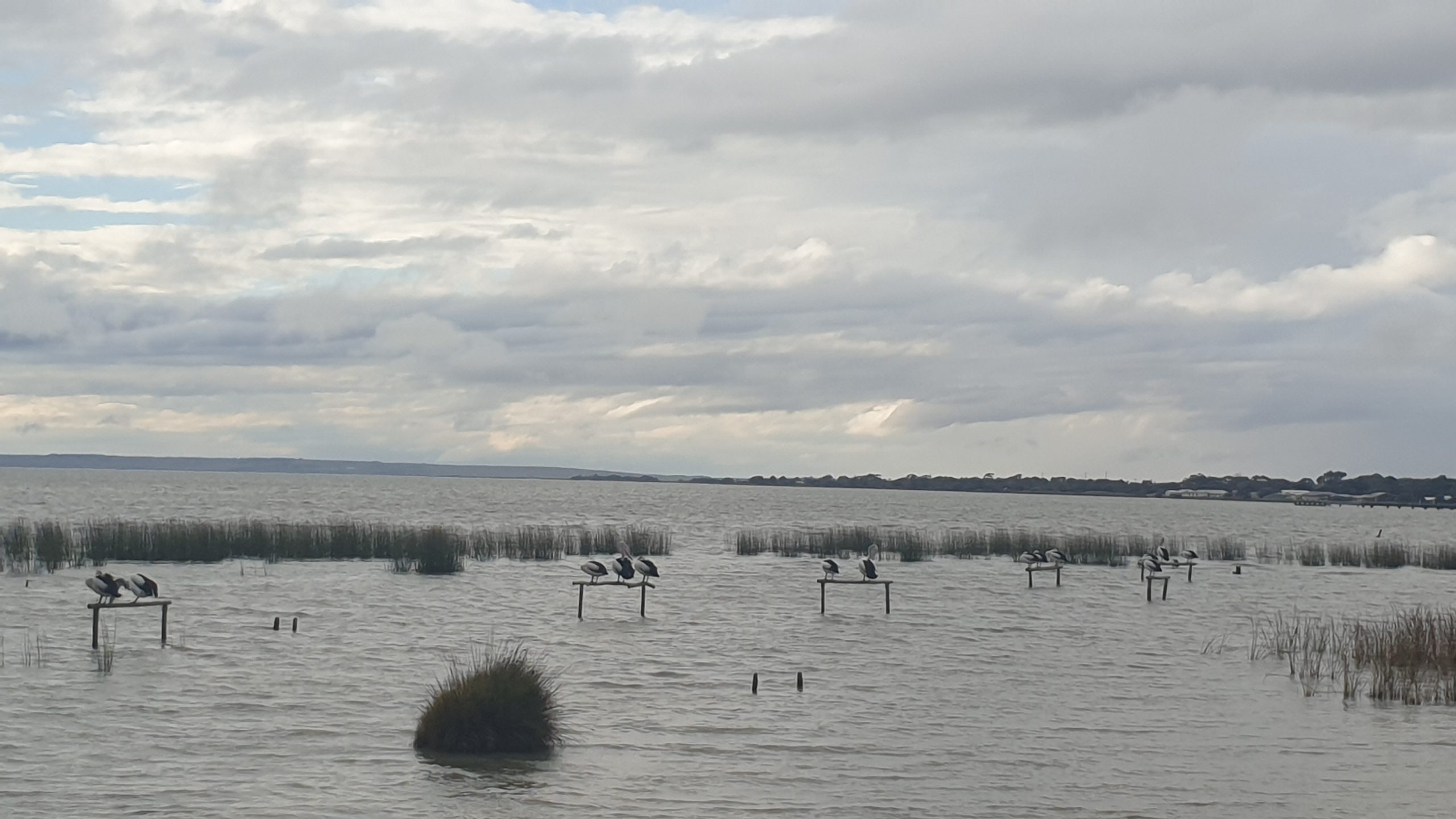 Scattered showers again for the last part of the Coorong. Driving past Lake Albert, Pink Lake and Lake Alexandrina.