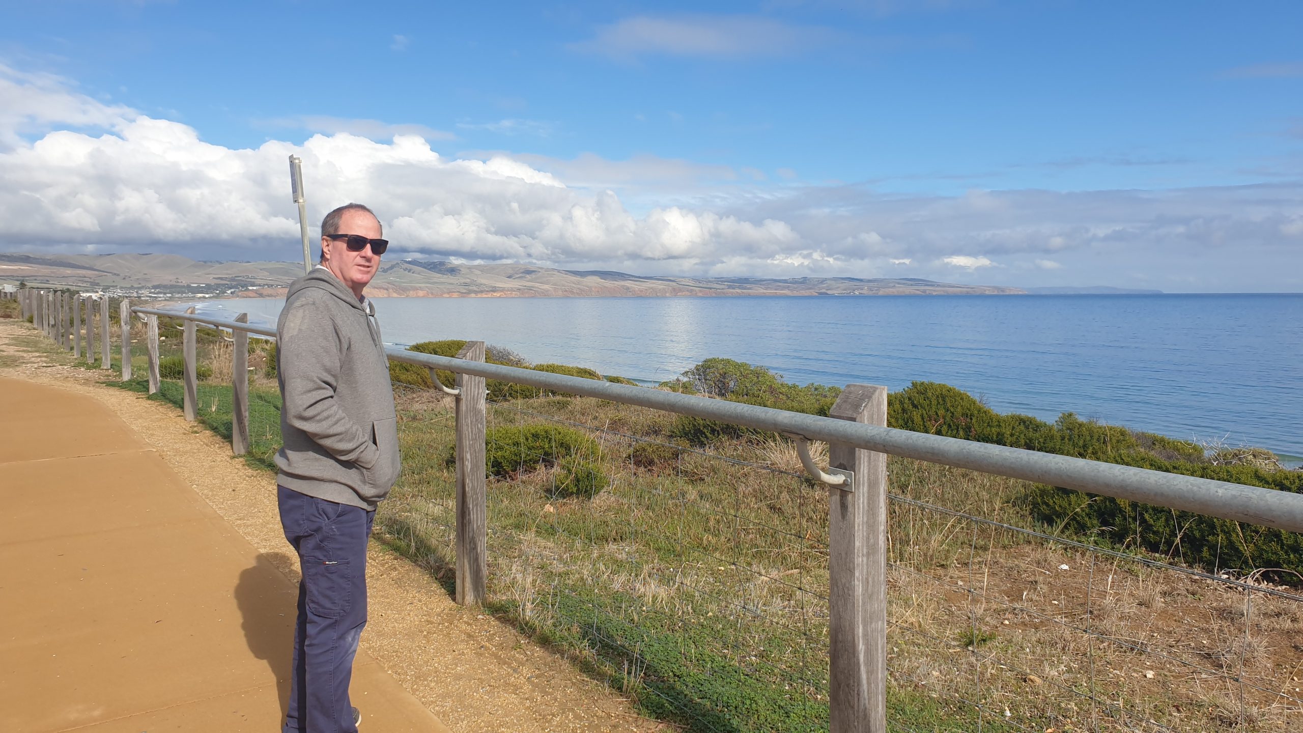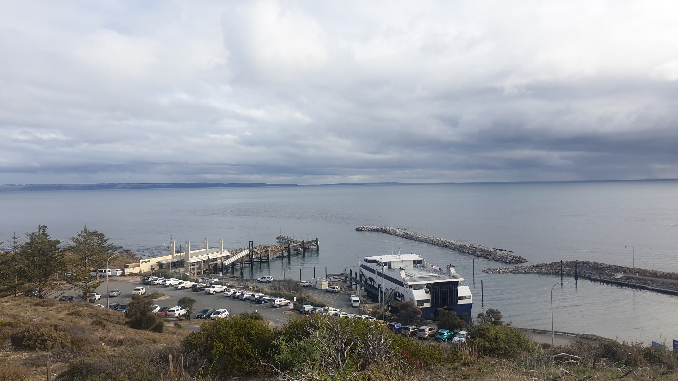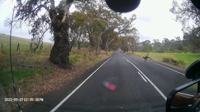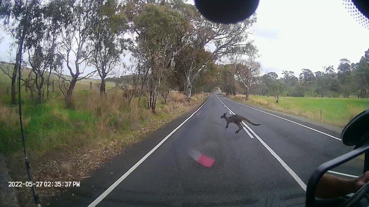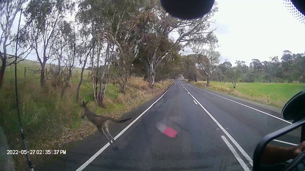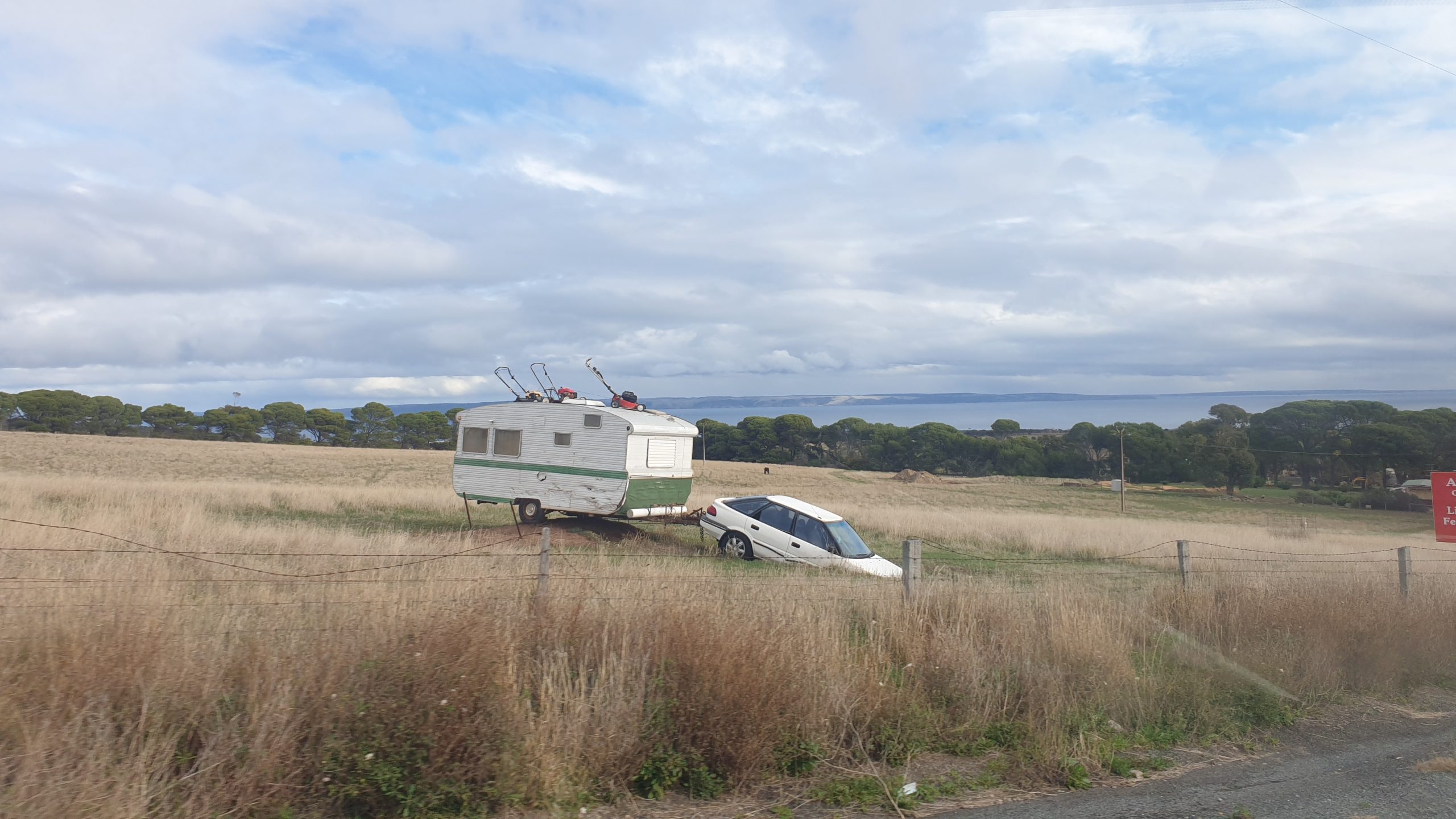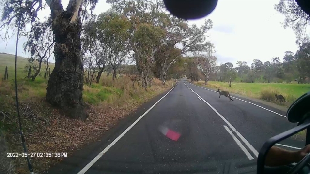 Driving towards Cape Jarvis, where we catch the ferry to Kangaroo Island tomorrow, we got an up close look at a live Kangaroo. We think he wanted to stow away to go to the island because he nearly ended up on the front of the van. Thank god our brakes work well.